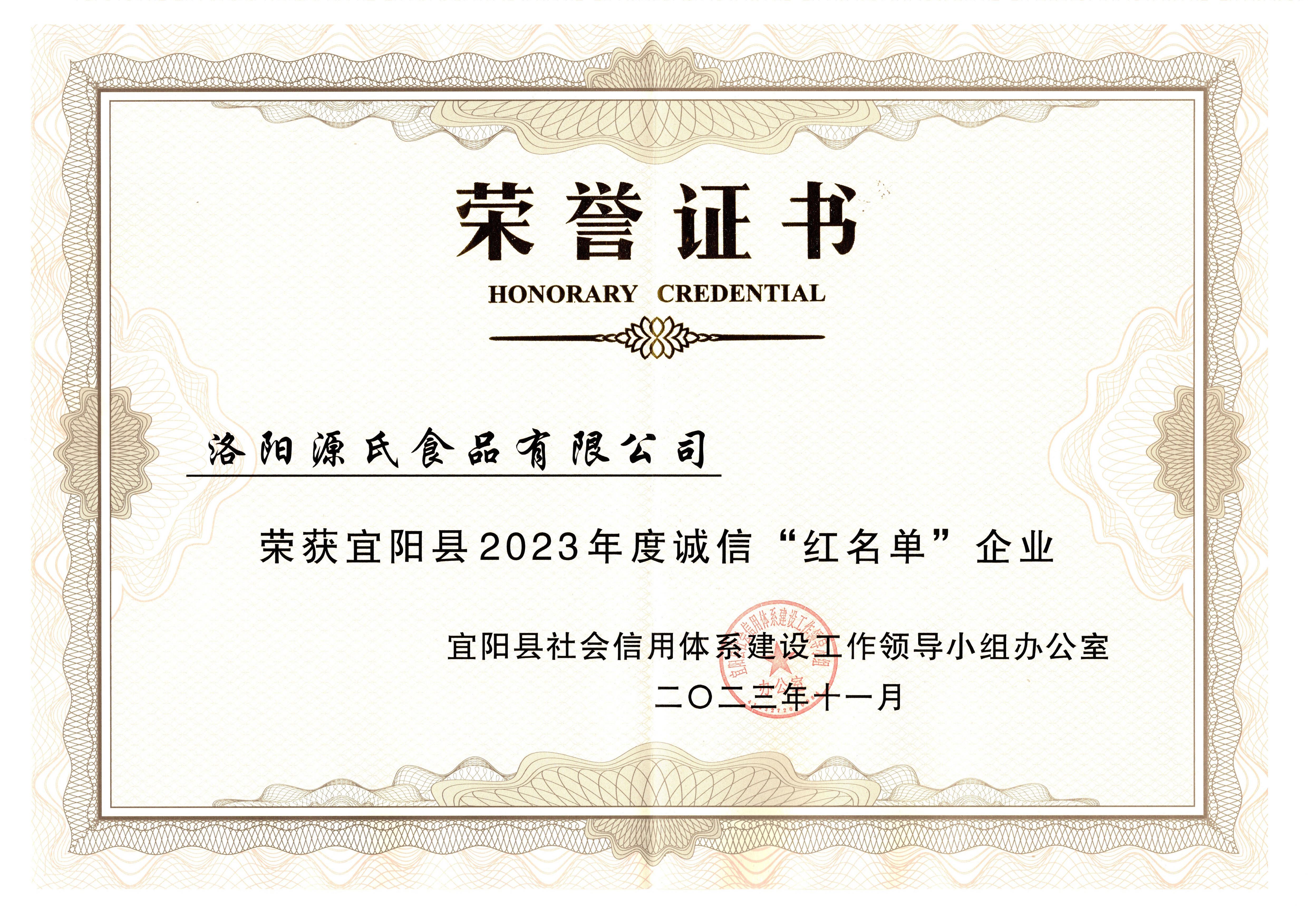 2023-12-2912月27日,洛陽市宜陽縣召開2023年度誠信“紅名單”企業新聞發布會,包含源氏食品等在內的36家企業獲得該榮譽稱號。 源氏成立至今已逾十二年,以人為本、誠信經營不僅是企業文化,更是貫穿始終…