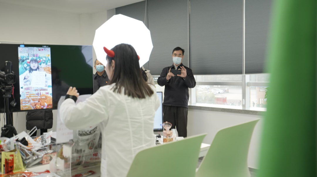 譚董帶領(lǐng)大家先在一樓展示廳觀看了源氏企業(yè)宣傳片,讓來賓們初步了解了公司規(guī)模以及生產(chǎn)流程,品牌中心焦夢圓陪同進(jìn)行實(shí)時講解,讓大家更快速地感受到源氏食品的主營產(chǎn)品、發(fā)展成果和企業(yè)文化。隨后,一行人來到三樓新媒體運(yùn)營中心,并進(jìn)入直播間參觀,現(xiàn)場問詢和感受源氏食品抖音平臺直播情況,李文峰副會長表示源氏食品全平臺電商運(yùn)營模式非常值得學(xué)習(xí)和借鑒。