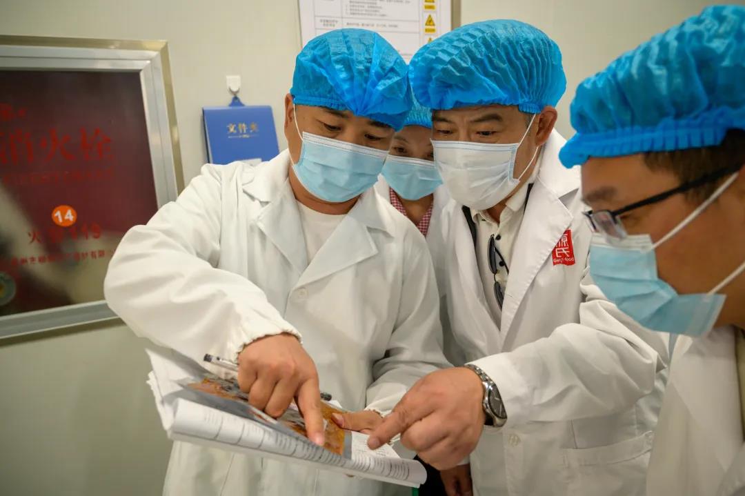 在生產車間現場考察過程中,孫治平副局長及張向俊股長一行除了解生產環境及食品安全控制情況外,還對現場包裝的生產日期、生產器具的消殺記錄等細節進行了詳細的檢查和交流,并對源氏食品嚴格的生產流程及生產秩序給予很高的評價和肯定。